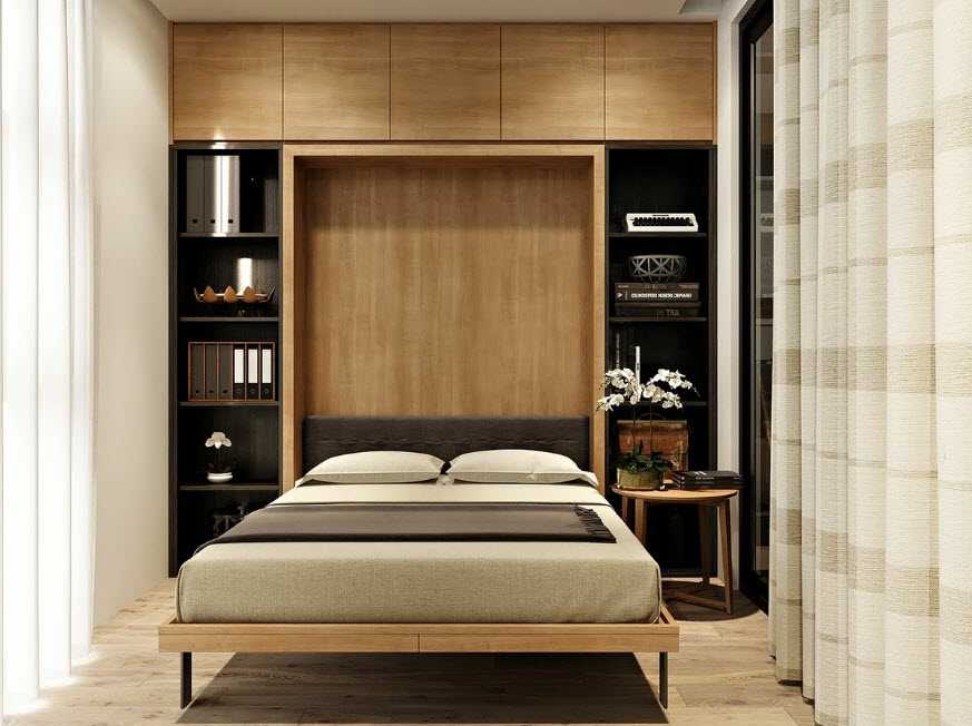 В маленьких спальнях ценность имеет каждый свободный сантиметр, поэтому пространство нужно расходовать с умом. Нередко место для отдыха приходится совмещать с гардеробной и кабинетом