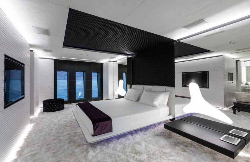 — Хай-тек — это чёткие линии, простые формы, дизайн архитектуры спальни в светлых тонах. Спальное место должно быть комфортным для сна, поэтому выбирайте не только красивые кровати в спальню, но удобные и функциональные.