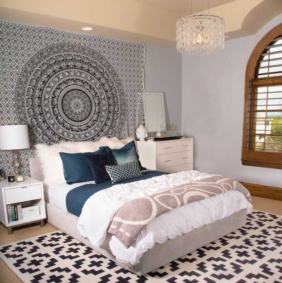 Полотно с геометричным рисунком в эклектичной спальне
