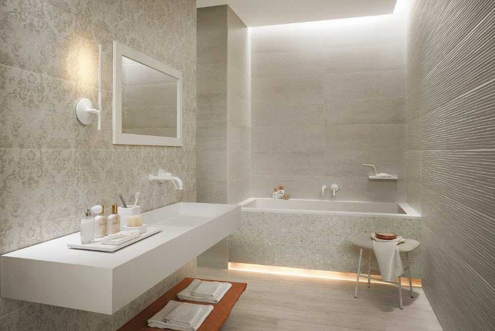 С помощью плитки можно увеличить пространство в комнате. Для этого подойдет крупная плитка светлых тонов. Стоит избегать тяжелых украшений и светильников не стенах. Когда речь идет о большой ванной, качественная керамическая плитка станет самой дорогостоящей частью ремонта, а вот в маленькой комнате можно позволить себе и относительно дорогую плитку, площадь-то меньше.