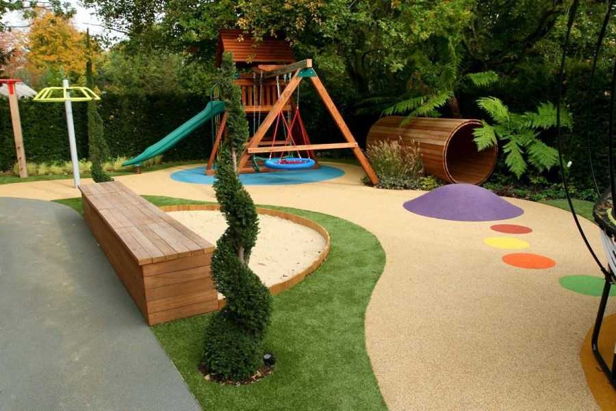 Участок с уклоном может использоваться как основа для формирования детской площадки или одинокой беседки с круговым озеленением. Для такого оформления потребуется строить подпорную стенку и вести ступеньки сверху. Удачно обустроится конструкция, если склон имеет две стороны.