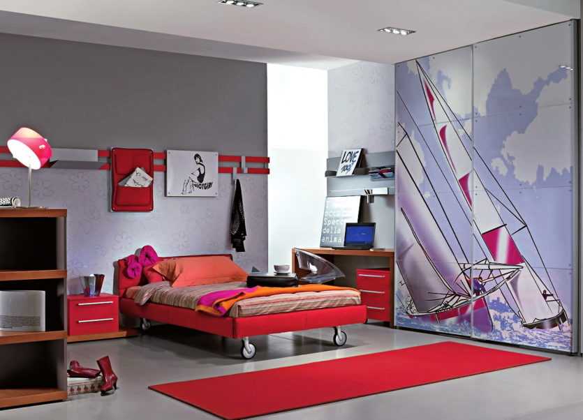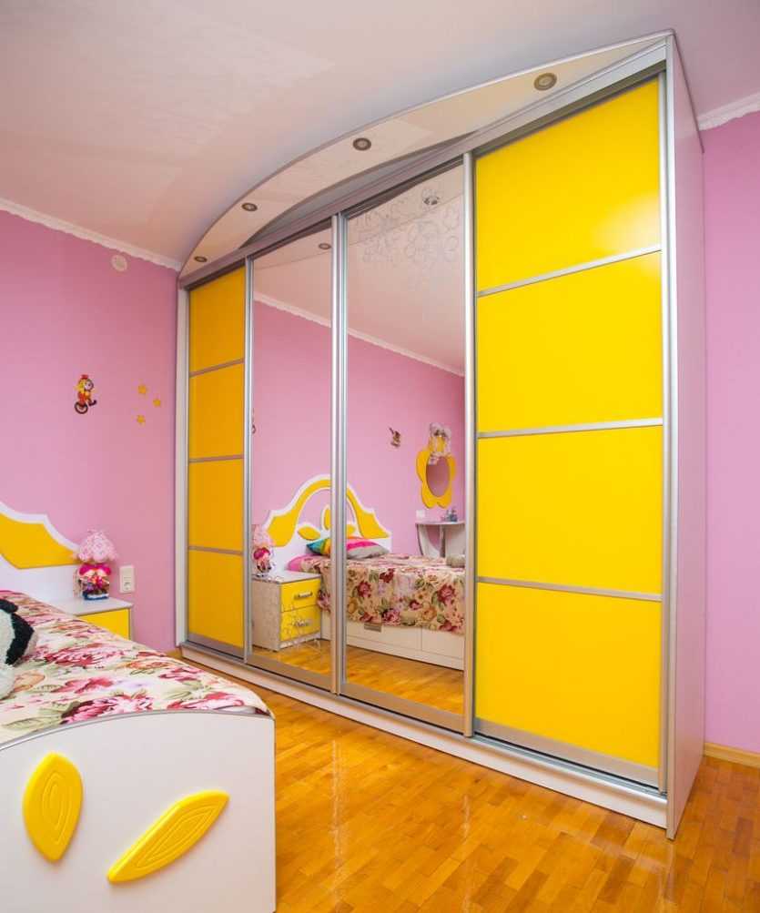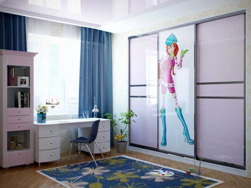 Для девочек школьного возраста лучше остановить свой выбор на зеркальных дверцах, чтобы они всегда имели возможность полюбоваться собой. Необходим этот прием и в том случае, если вы хотите визуально сделать комнату несколько больше.