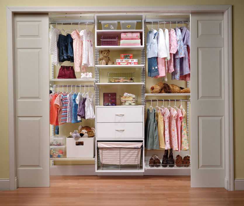 - Возможность сложить все вещи ребенка на конкретные места — и даже если вещей у него со временем станет больше, в шкафу все равно будет находится под них пространство.