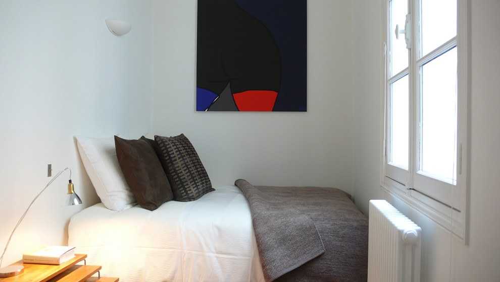 - Минимум текстиля (только постельное белье, покрывало, миниатюрный прикроватный коврик).