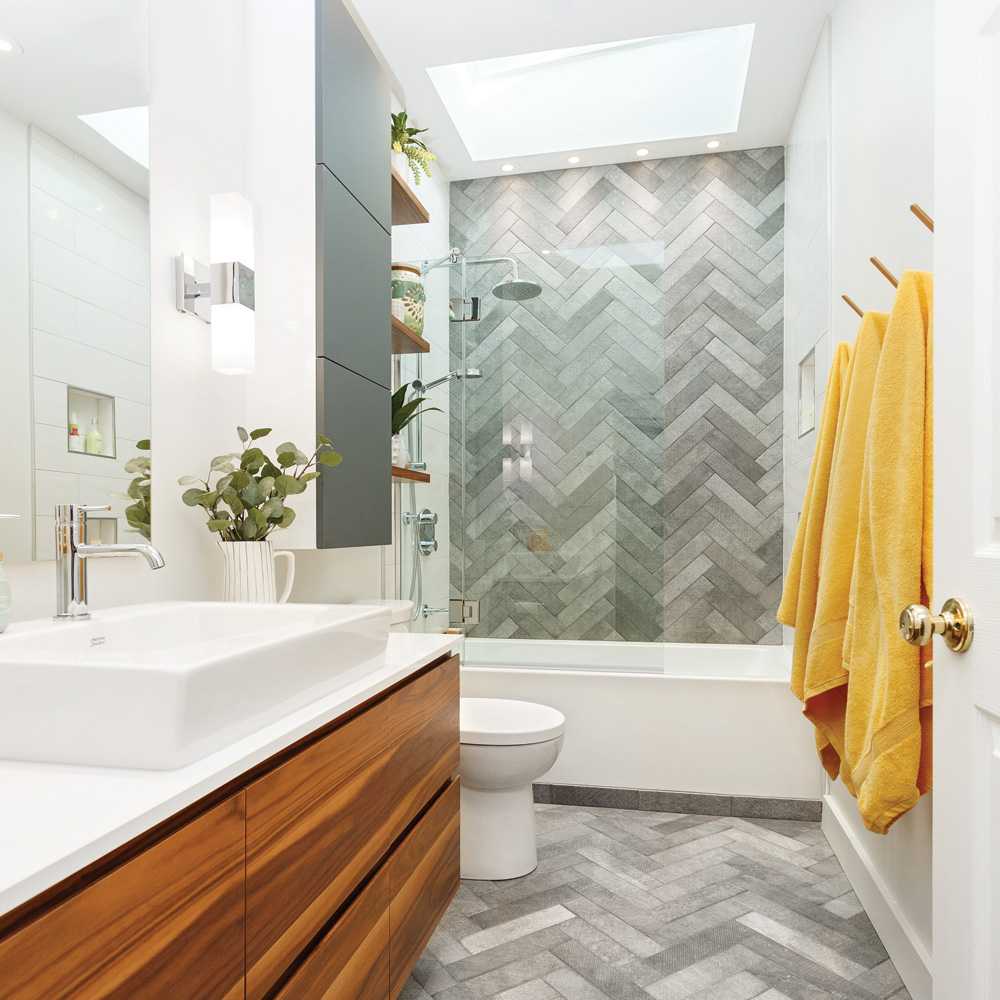 Идеально, если в ванной комнате есть солнечный свет. Если в ней нет окна — важно правильно использовать искусственное освещение.