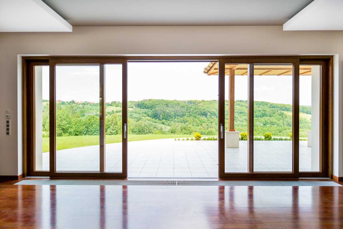 Последние два варианта достаточно часто используются в загородных домах. Панорамные раздвижные двери устанавливают в том числе на дачных верандах. Они позволяют наслаждаться великолепными живописными видами окружающей природы, не выходя из дома.