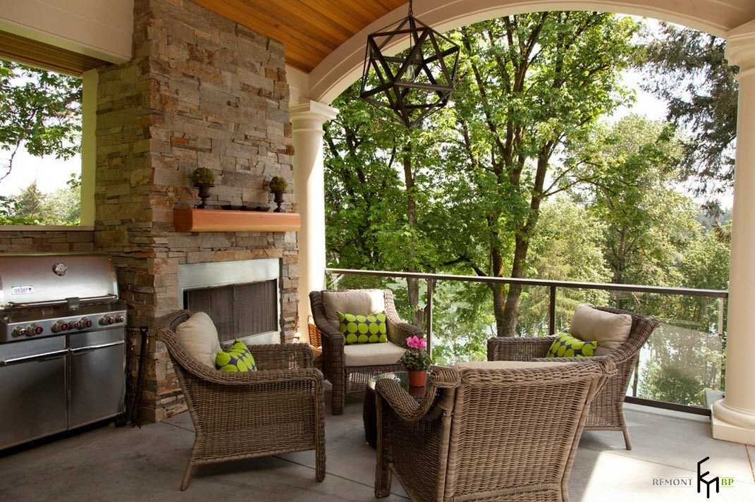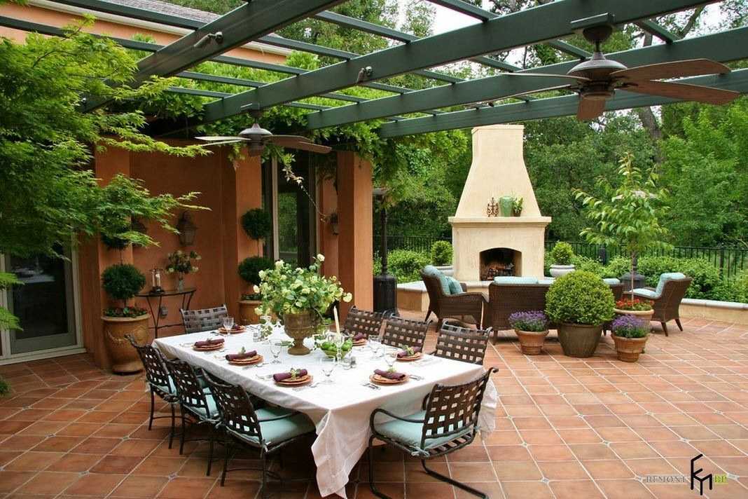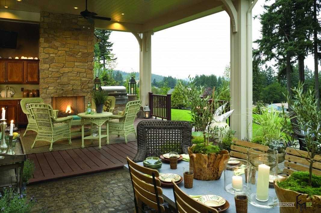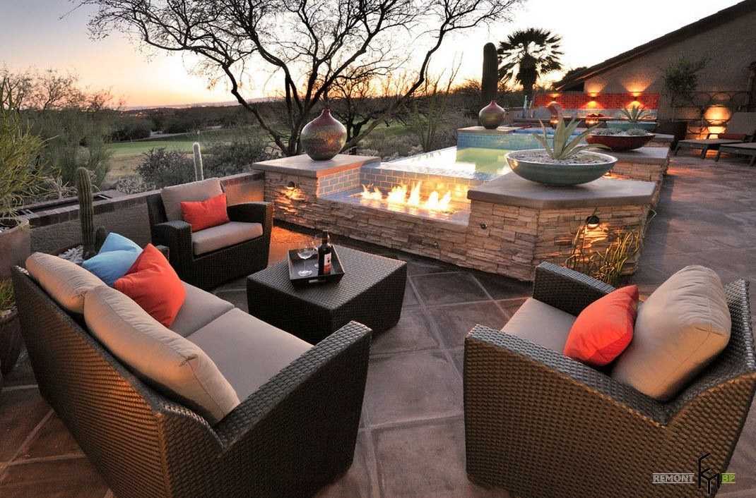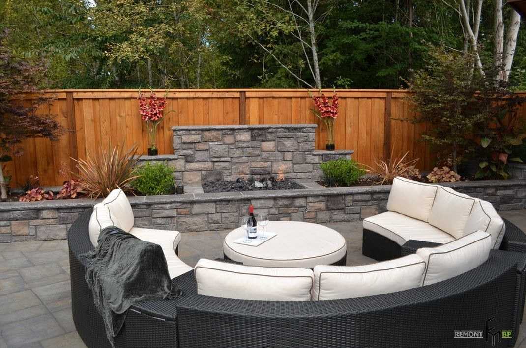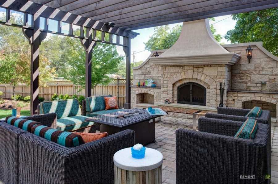 Красивый дворик с камином, печью и зоной барбекю
