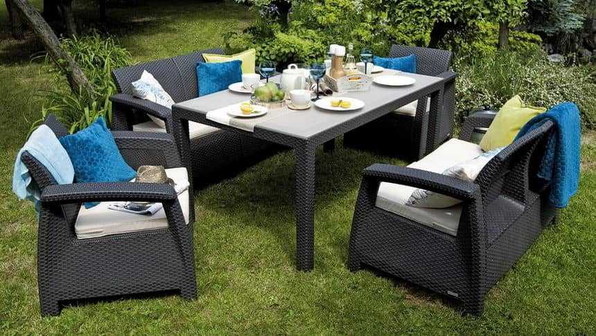 Все варианты мебельных гарнитуров для дачных и садовых участков условно делят на три группы: