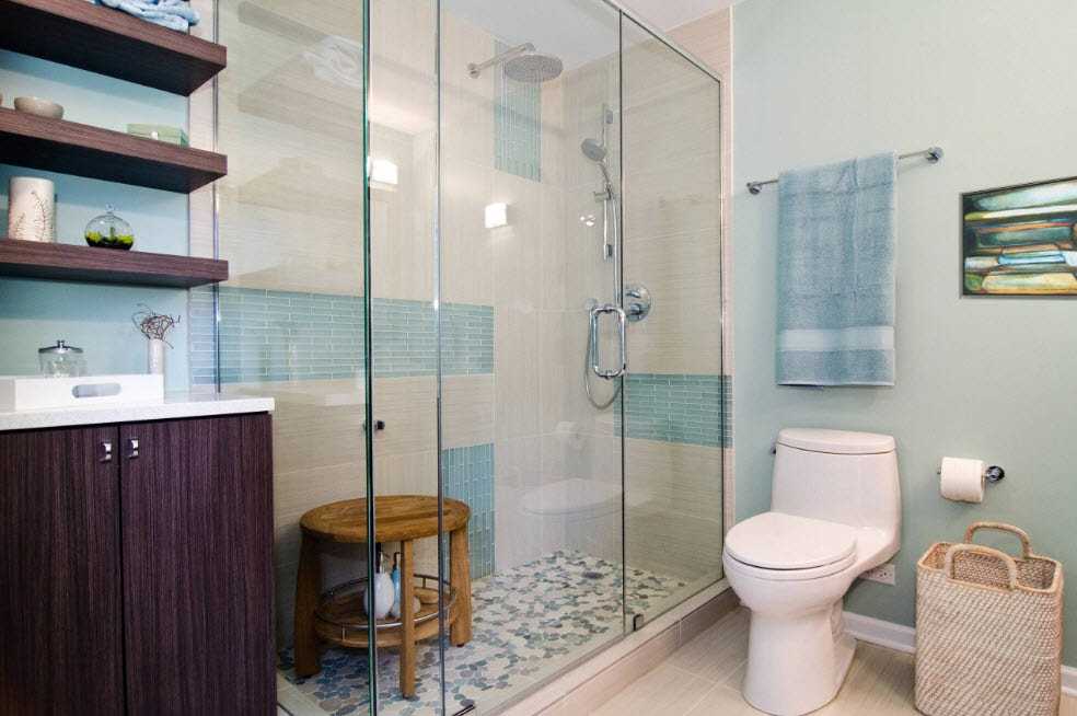 Интерьер ванной комнаты с душевым уголком нуждается в хорошей и качественной отделке, подходящей по стилю. Подбирая материалы стоит учитывать, что они обязательно должны быть водостойкими.