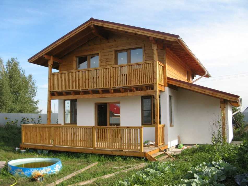 Такой тип постройки дома позволяет возвести дом с мансардой, крышей, гаражом, террасой и даже в полтора этажа. Также крышу можно сделать любого плана.