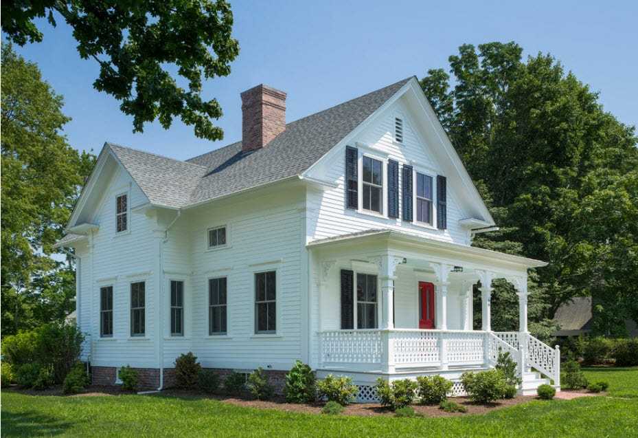 - канадский отличается массивностью, наличием больших окон и декоративных колонн;
