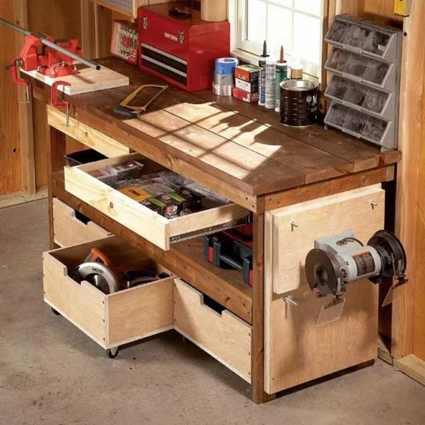 - выдвижные ящики. Этот пункт не обязателен, но их наличие намного упростит хранение вещей. В конце концов, вместо верстака можно поставить любой стол в хорошем состоянии — ненужный письменный или кухонный стол, к примеру.