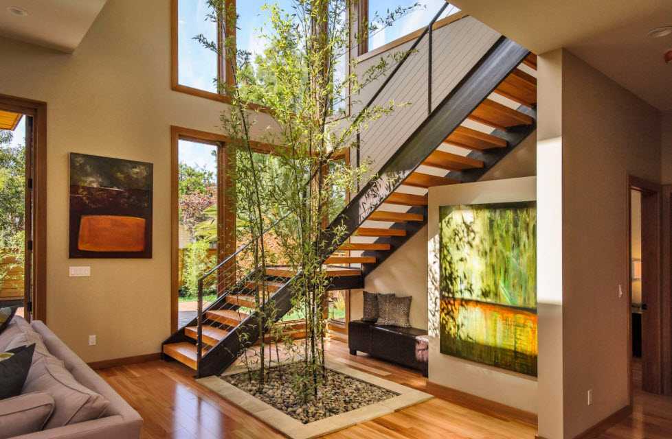 В любом дизайне важна гармония, поэтому все объекты должны сочетаться между собой. Лестница может стать эффектным дополнением в доме или центром образа