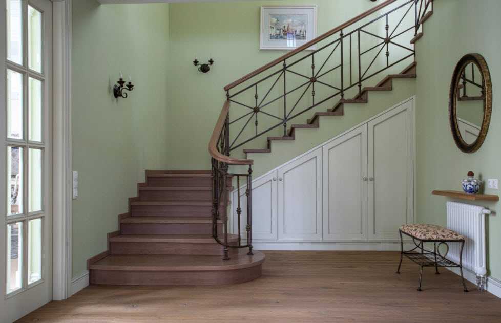 При рациональном подходе ниша под лестницей гармонично впишется в общий интерьер помещения и превратится в удобную функциональную зону.