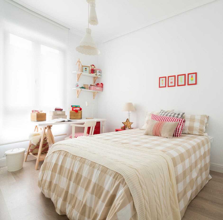 Скандинавский стиль, который сегодня находится на гребне популярности, часто выбирают для дизайна подростковых спален. При этом для оформления помещения предпочтение чаще всего отдается белому цвету. Это решение вполне оправданно, поскольку такая колористика «работает» на расширение пространства и комната выглядит просторней и светлее. Главное – подобрать теплый оттенок белого цвета, и тогда интерьер будет выглядеть не только светлым, но и уютным.