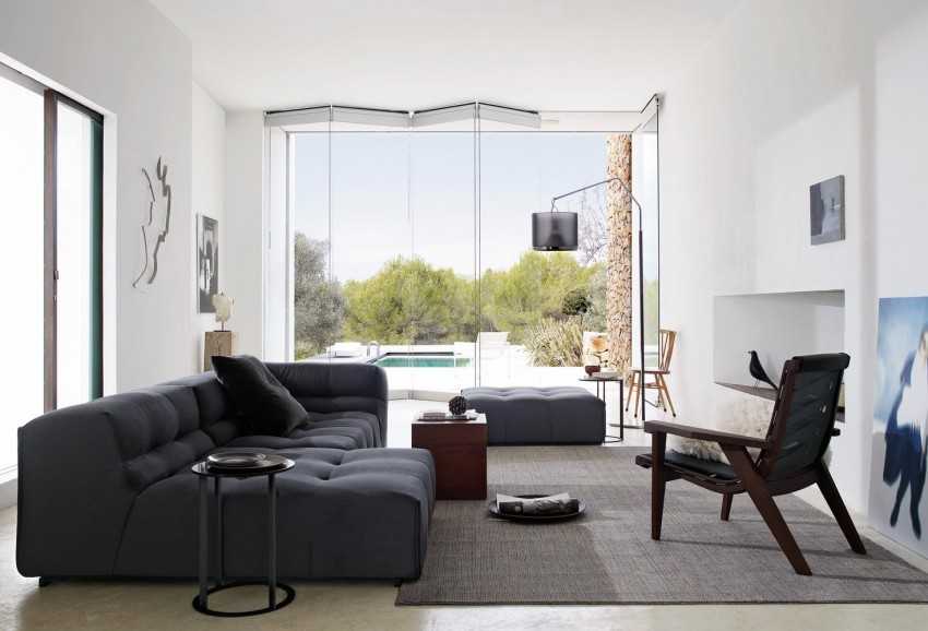- Присутствие темной меблировки обязывает позаботиться о светлом напольном покрытии и стенах.