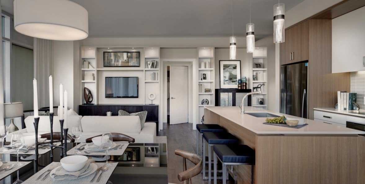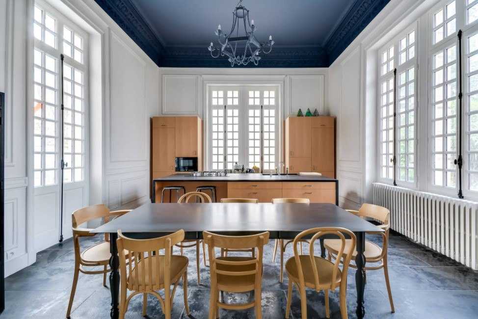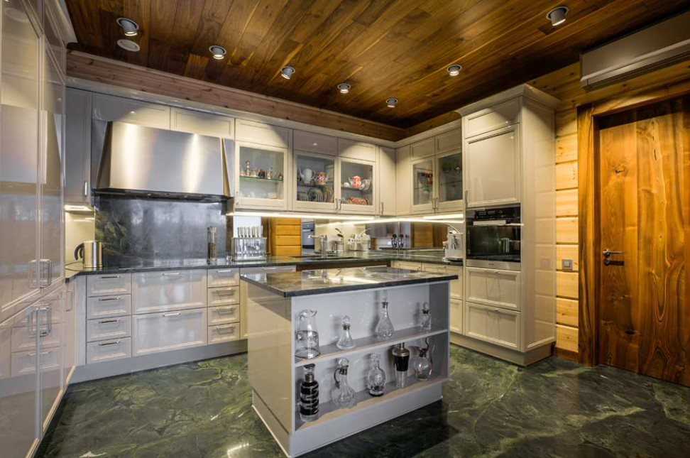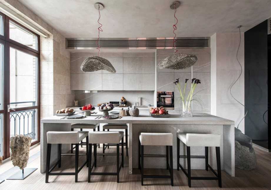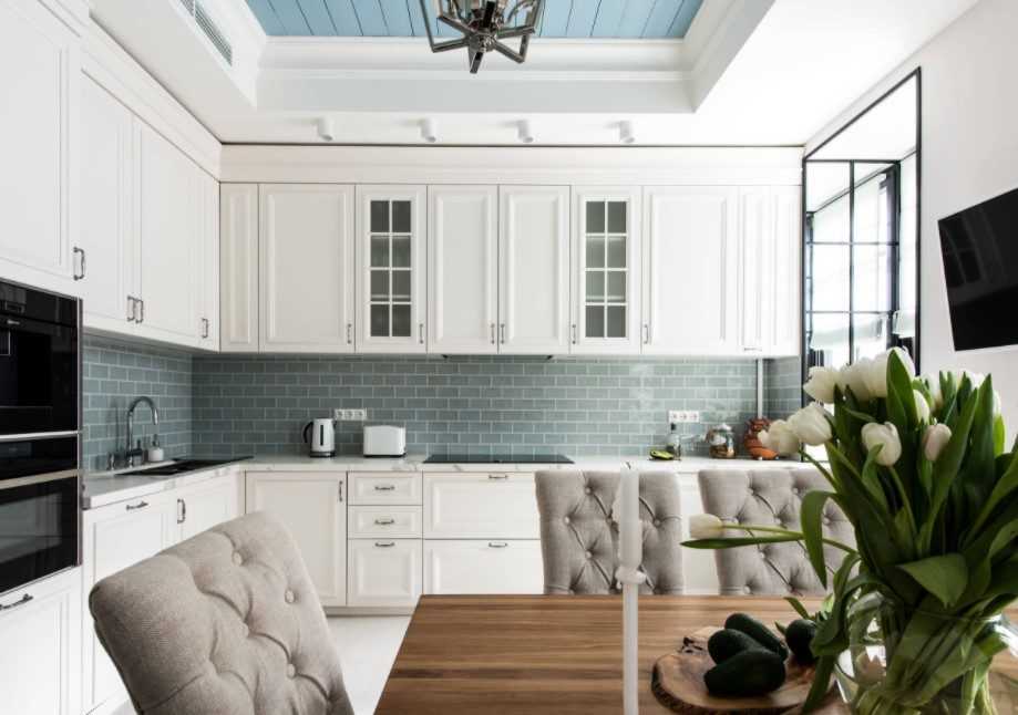 Парящая линия на потолке в интерьере кухни выглядит стильно