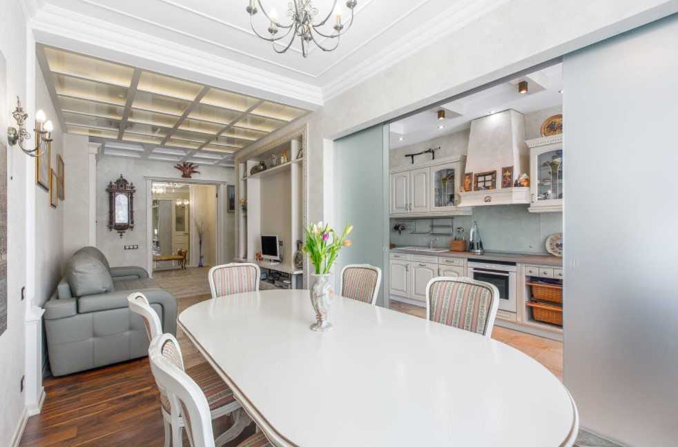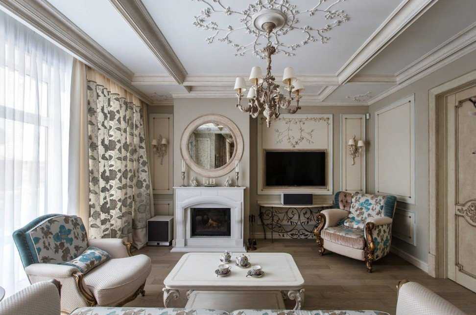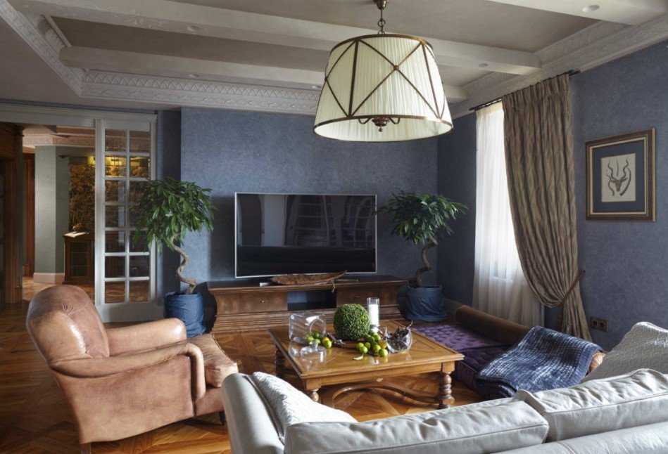 Одни из самых просторных помещений в доме или квартире обычно отводится на гостиную комнату. Именно поэтому потолки могут быть самыми разными и интересными. Если потолки в вашем помещении низкие – советуем остановится на классических вариантах покрытия. К примеру, можно выполнить окрашивание потолка с использование плавного градиента. Потолки, которые выполнены в венецианской технике с использованием штукатурки, выглядят эффектно и хорошо вписываются во многие стили, включая классический.