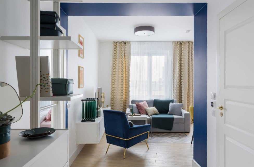 Интерьер в черно-синем оттенке в гостиной Источник design-homes.ru