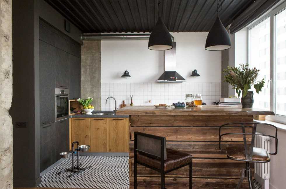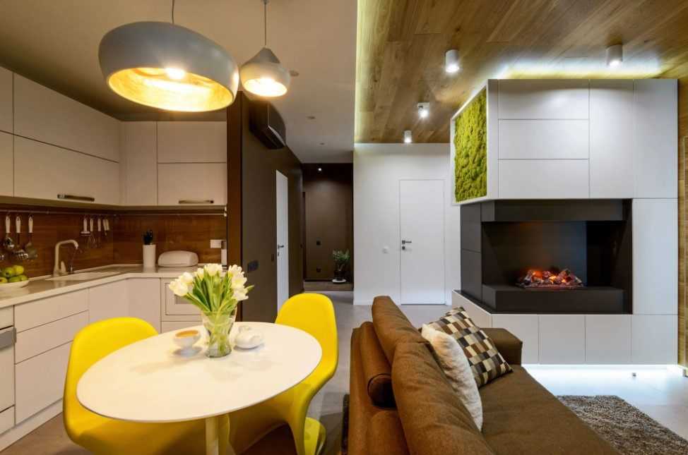 Естественные цвета всегда создают шикарный тандем. Например, присутствие коричневого в отделке мебели хорошо смотрится с черной основой. В качестве дополнительного цвета часто используют древесный. Он может прослеживаться на полу, в гарнитуре, окнах, текстильных принадлежностях.