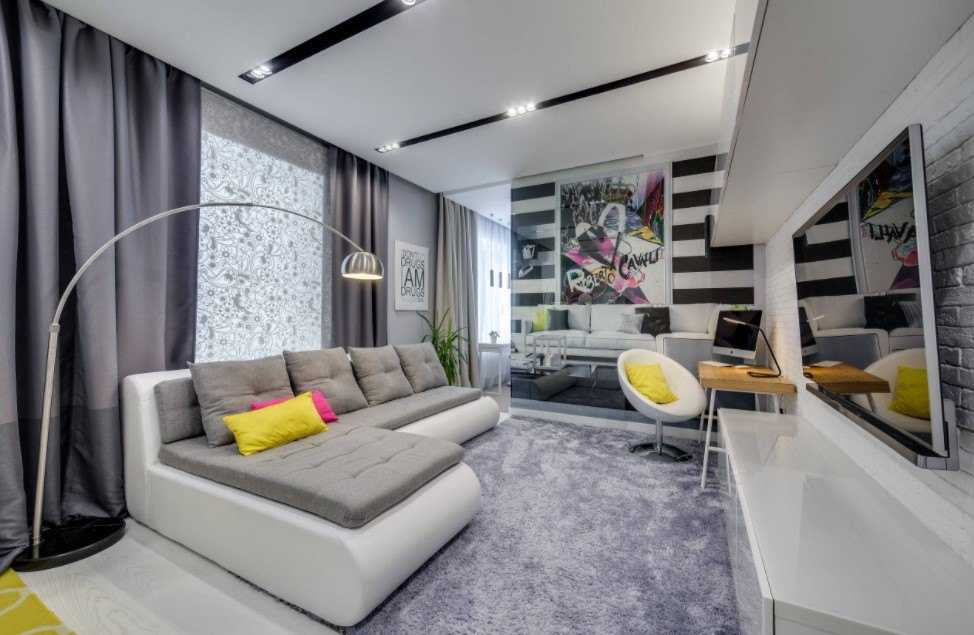 - маскировка дефектов: если потолок в гостиной покрыт неровностями и дефектами, такие конструкции позволят скрыть их от посторонних глаз;