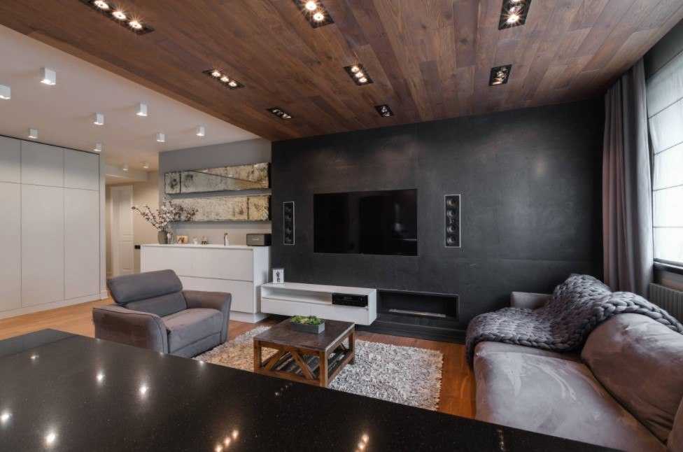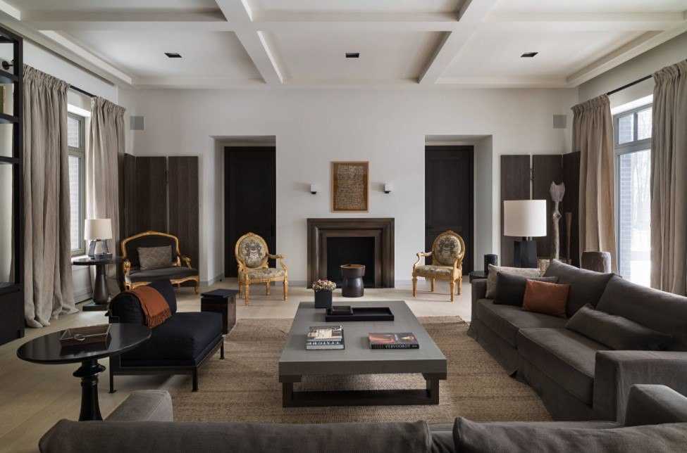 Интерьер с черным и коричневым оформлением в зале Источник domoholic.ru
