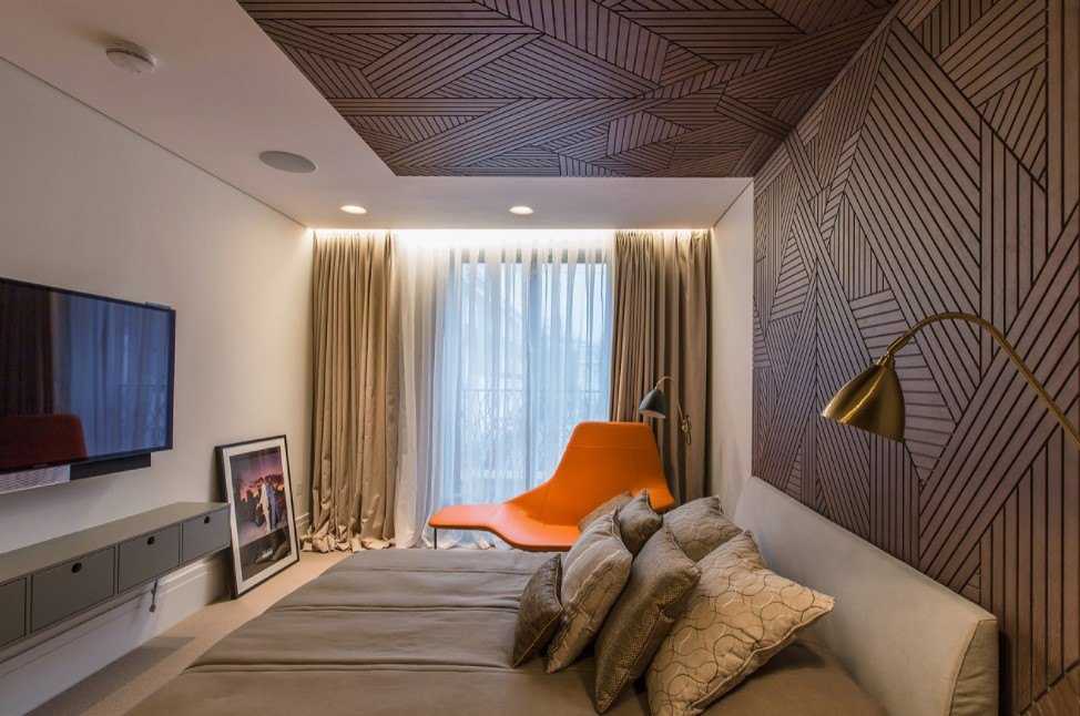 Резной натяжной потолок в интерьере спальни как взрослой, так и детской — выглядит необычно и красиво