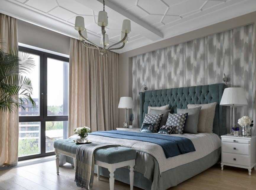 Красивый интерьер спальни в пастельных и черных тонах Источник dekorin.me