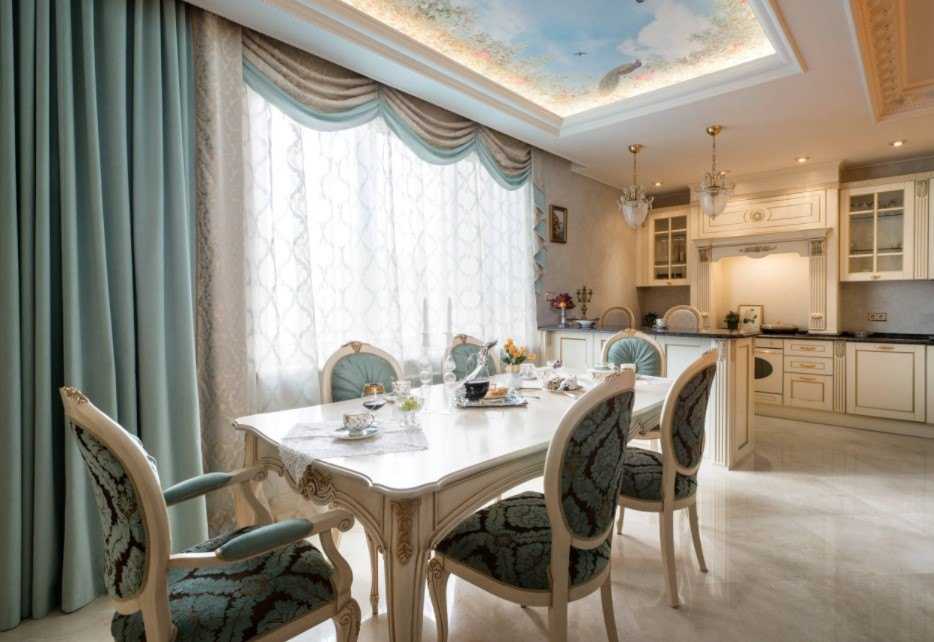 Если интерьер помещения оформляется в стиле неоклассики, актуальными становятся натяжные потолки, на которых изображены великолепные фрески эпохи Возрождения. Они придают любому помещению роскошный аристократичный вид с иллюзией нахождения в царских палатах.