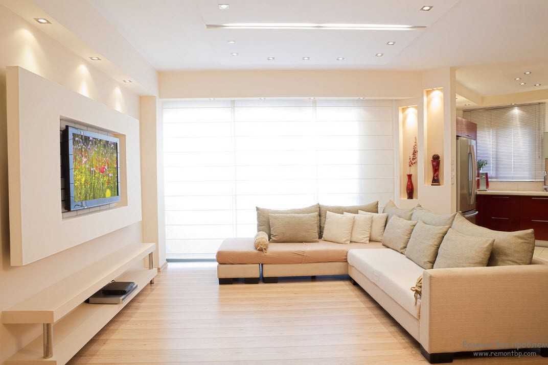 Необдуманное использование цветов в дизайне гостиной с телевизором может стать серьезной ошибкой. Глубокие темные тона поглощают свет. И без того небольшую комнату они могут сделать совсем маленькой и мрачной. Медицинскую стерильность принесет обилие белого. Выбирая гармоничный нейтральный цвет, лучше останавливаться на сером. Он прекрасно сочетается со многими яркими и нежными оттенками, не раздражает и не утомляет глаза.