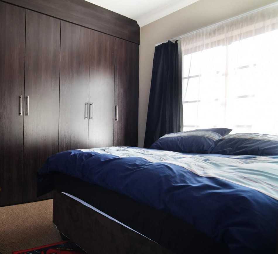 Современный дизайн маленькой спальни 9 кв м с большим шкафом– фото