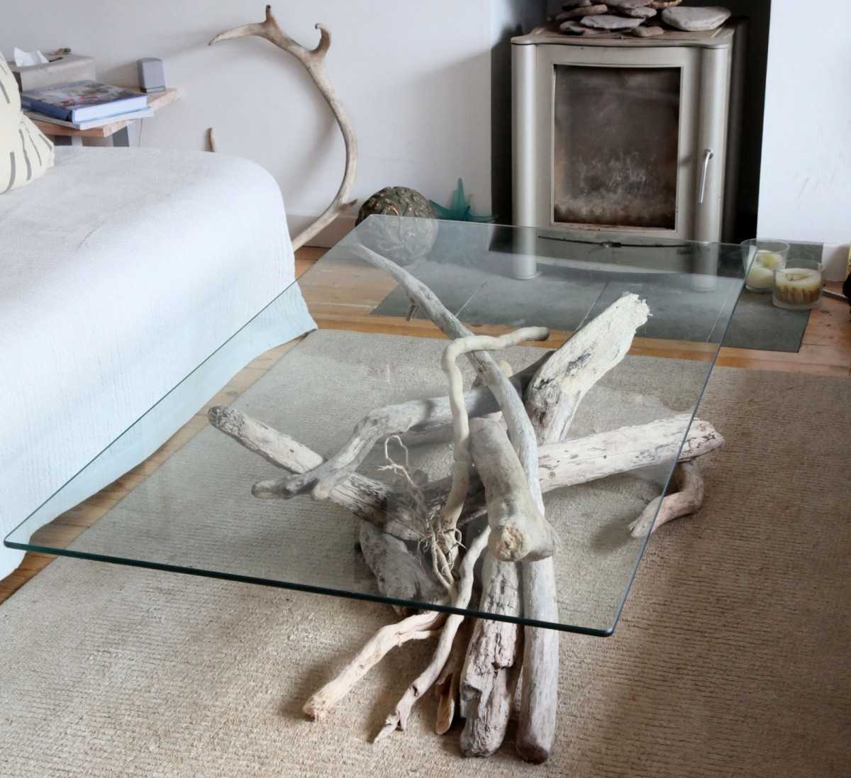 Поэтому журнальный столик в стиле кантри должен быть выполнен в необычном стиле, к примеру, из грубой древесины или просто из необработанных поленьев.
