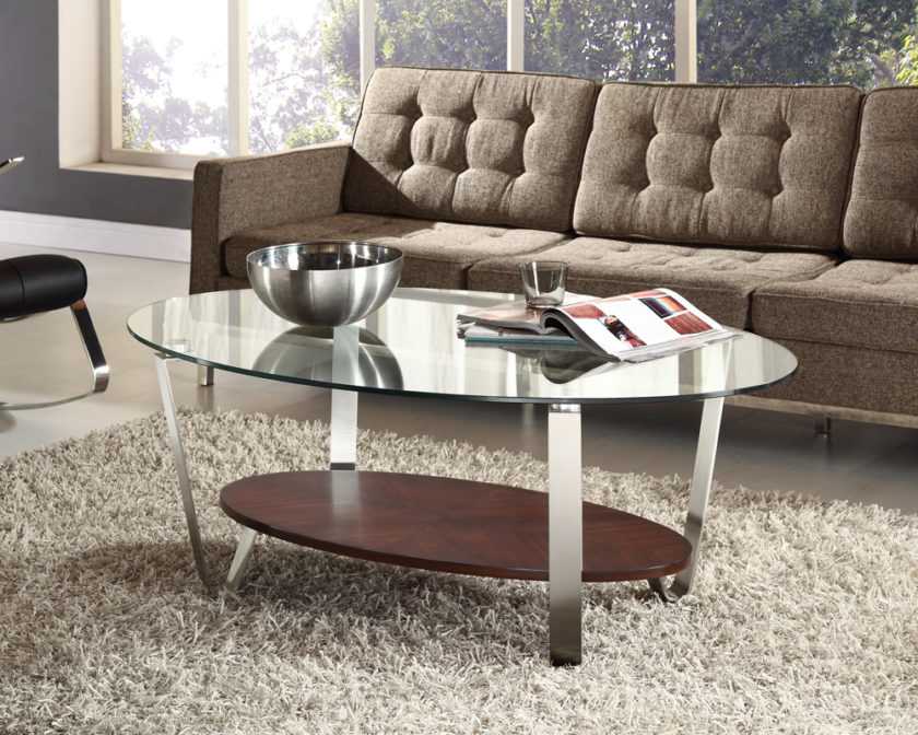 Обычно производители предлагают купить журнальный столик в комплекте с мебелью для гостиной, но если такой возможности нет, материал следует подбирать так, чтобы он подходил к другой мебели. То же правило касается и стиля стола — если в гостиной преобладает мебель с закругленными краями, идеально подойдет овальный или круглый стол. Для угловой мебели лучше всего подойдет квадратный или прямоугольный журнальный столик.