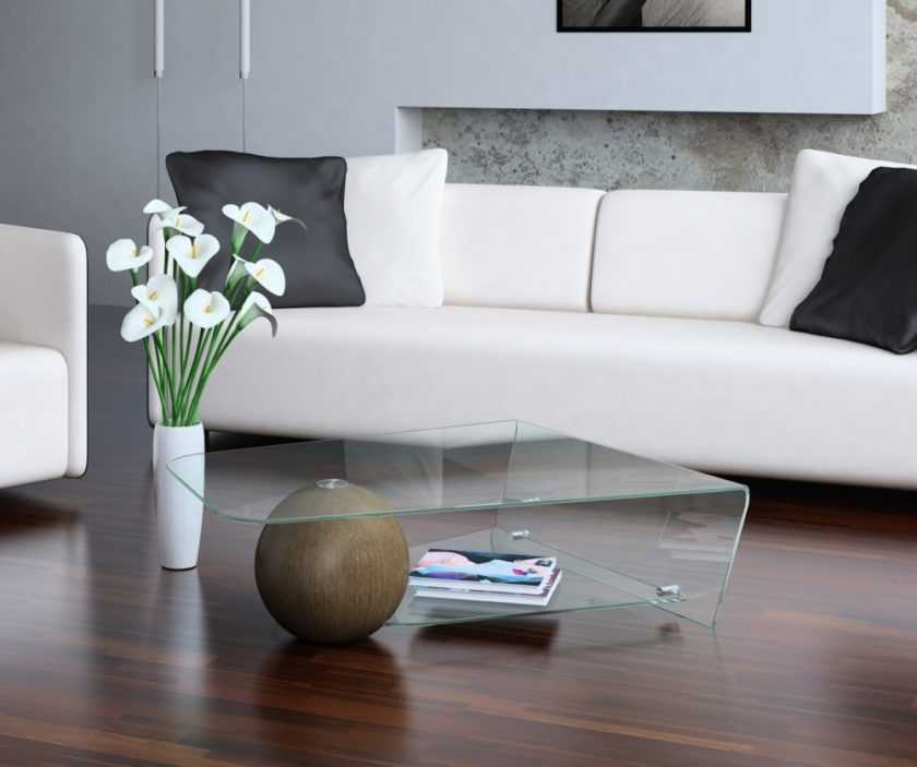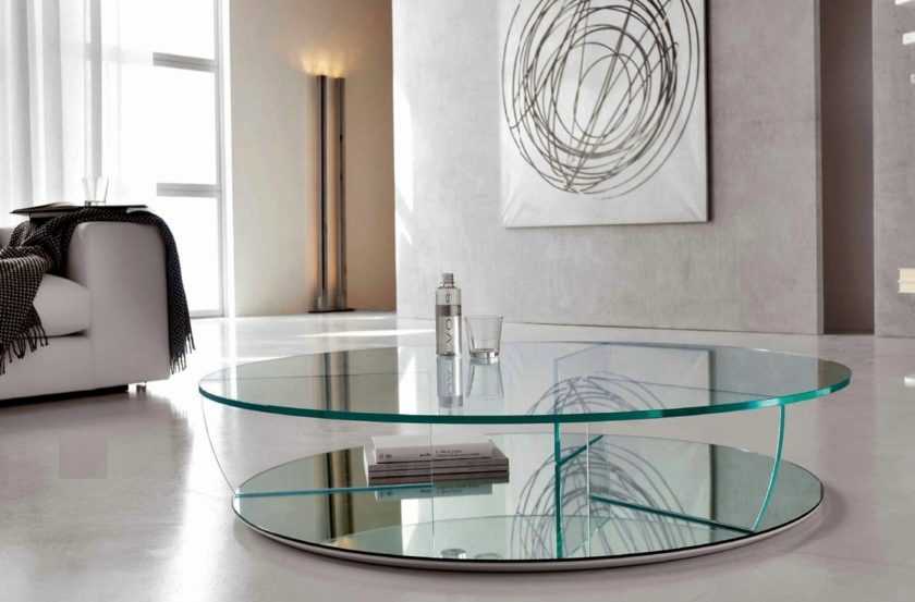 Журнальный стеклянный столик должен иметь столешницу толщиной 6-8 мм, а стол для приема пищи немного толще, почти 10 мм, не менее.