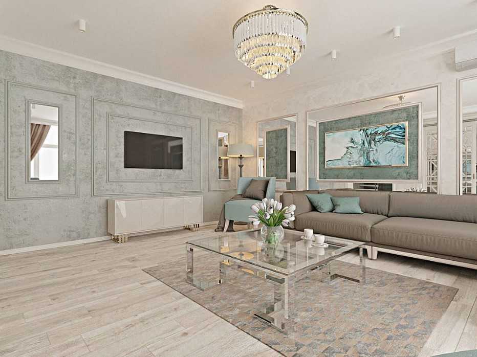 - В гостиных, особенно больших, нужно избегать использования слишком ярких цветов.