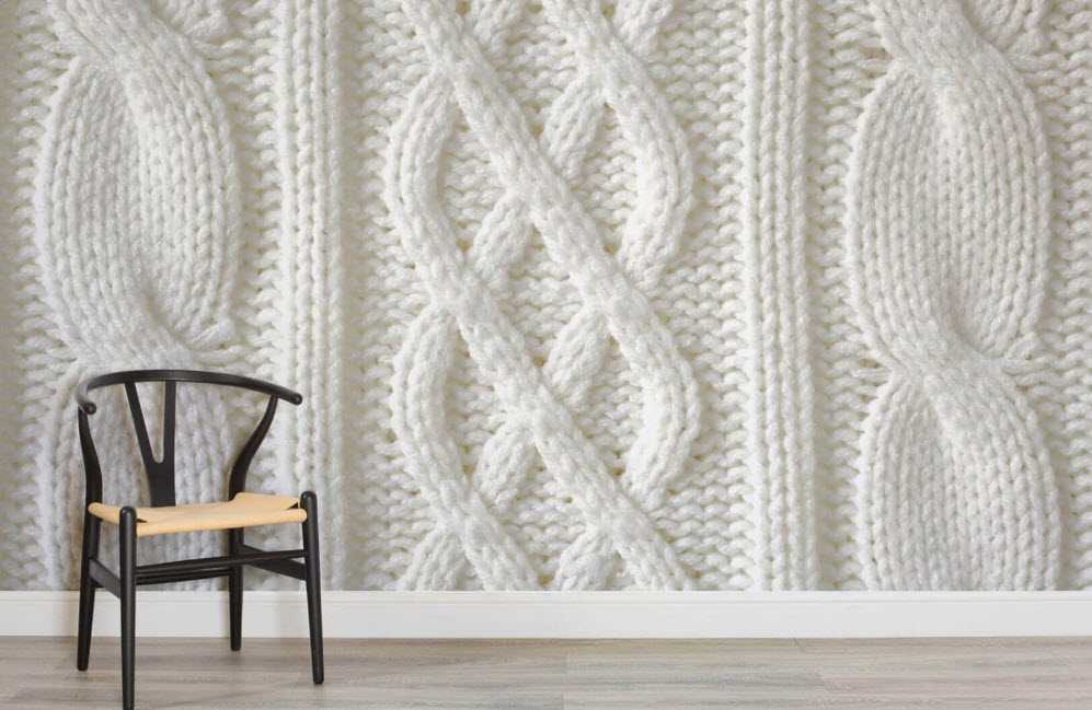 Главным трендом 2020 года стали уютные «вязаные» обои, производством которых занимаются самые известные мировые дизайнерские студии. Данный тип поверхности станет идеальным решением для популярного скандинавского стиля, также вязаные обои подходят для ретро стиля и минимализма, ведь они выглядят привлекательно и изящно. Изображением связанного из толстой пряжки полотна поражает своей естественностью, однако использовать такую поверхность лучше в качестве акцентной стены, возле которой можно расположить диван, накрытый пледом крупной вязки с рисунком, идентичным настенному изображению.