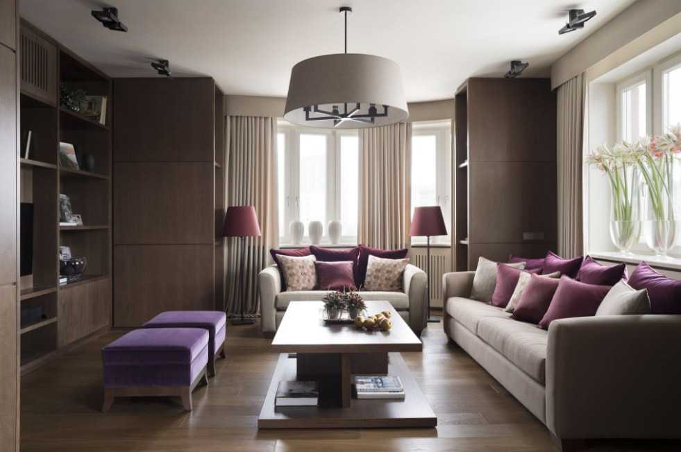 Разновидности фиолетовых расцветок отлично гармонируют с горчичным и бежевым цветом. Синие и бирюзовые цветовые расцветки смогут создать отличный интерьер в вашем доме.