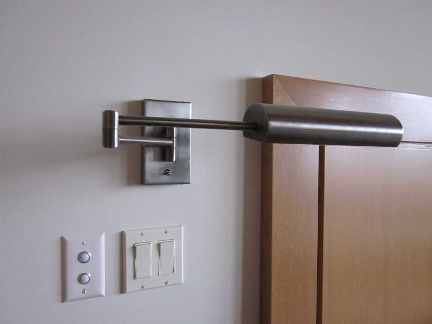 Осветительный прибор, закрепленный на кронштейн, покрытый сверху абажуром или плафоном. Такой вариант достаточно удобен за счет наличия поворотного механизма. Благодаря этому вы можете развернуть его в нужную сторону.