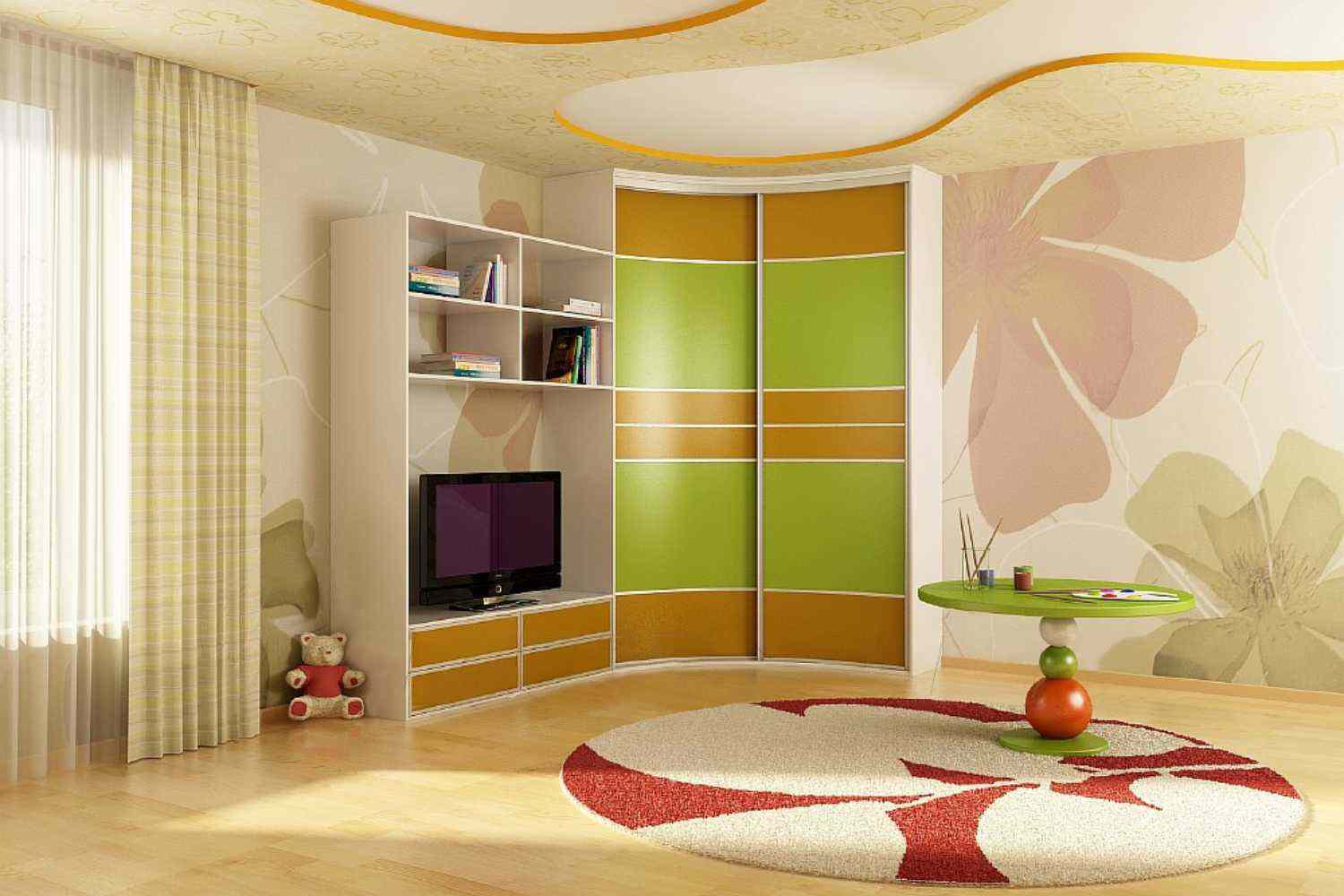 - Полукруглая форма. Этот метод можно применить для разделения комнаты на две зоны.