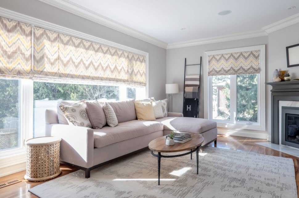 При размещении дивана возле окна следует учитывать высоту подоконника, чтобы его спинка не перекрывала естественного освещения.