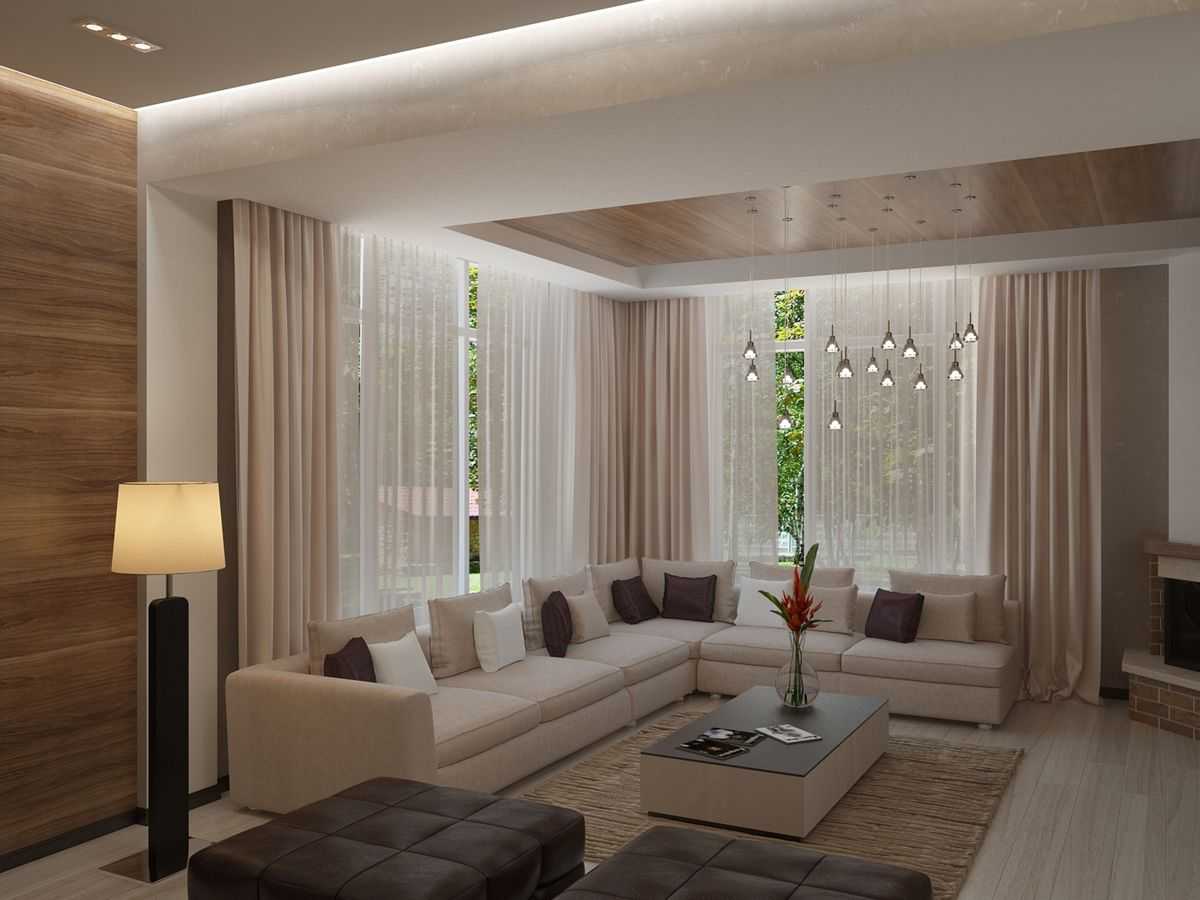 Дизайн гостиной с угловым диваном нужно сделать продуманным, составить одну общую композицию. Рекомендуется чтобы эта часть мебели соответствовала имеющимся размерам комнаты. Общепризнанных стандартов в размерах не существует.