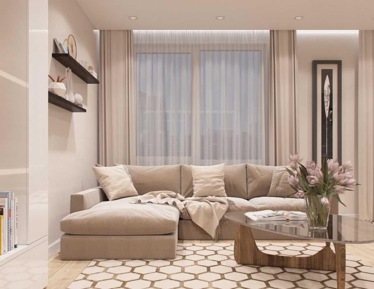 Для малогабаритной квартиры интерьер зала с угловым диваном – один из хороших вариантов. Это позволяет расположить мебель эргономично, оставить свободное пространство для других элементов в комнате. Можно рассмотреть небольшую модель с классической конфигурацией.