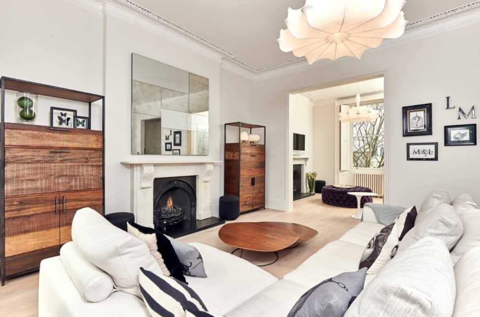 Дизайн гостиной с камином в загородном доме (100+ фото)