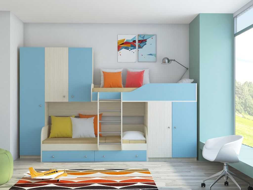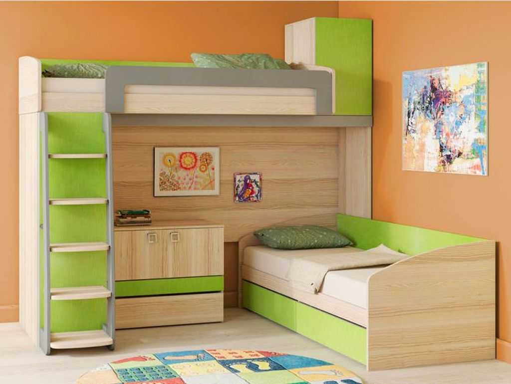 - угловые – применяются в угловых двухъярусных кроватях. Как правило, они размещаются в углу детской, освобождая дополнительное пространство.