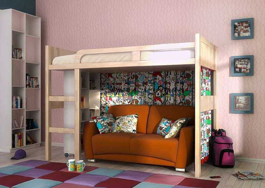 - существуют модели, содержащие в своей конструкции не только спальное место наверху для ребенка и диван для родителей, но и письменный стол, небольшой платяной шкаф, выдвижные ящики;