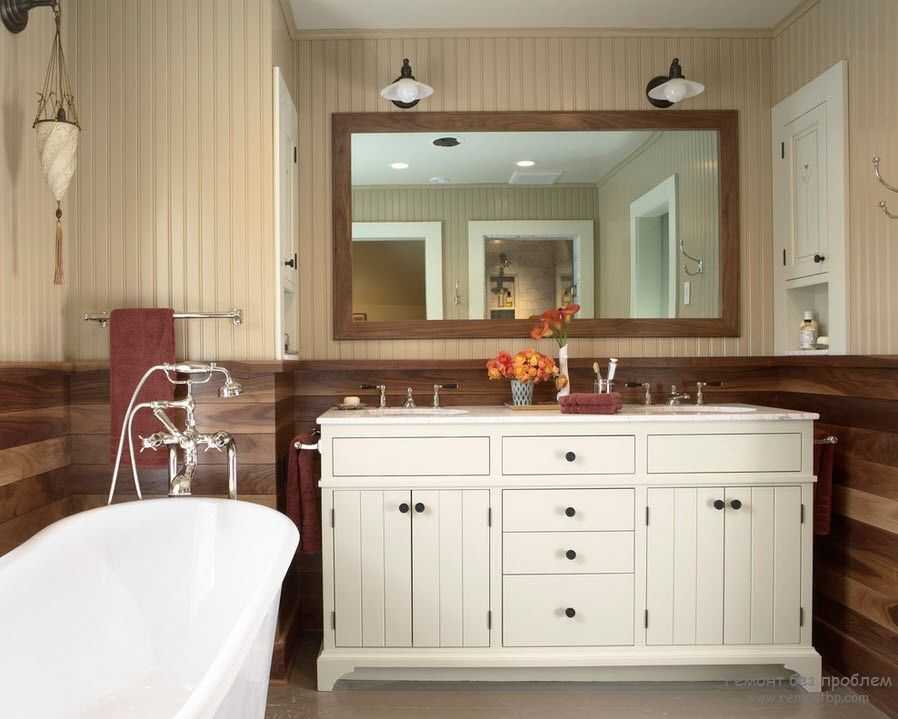 Выбор мебели и сантехники подводит к завершению оформления ванной комнаты. На этом этапе стоит руководствоваться только своими пожеланиями. Нужно позаботиться только про укрепление деревянных половиц, чтобы они смогли выдержать нагрузку от полной ванной.
