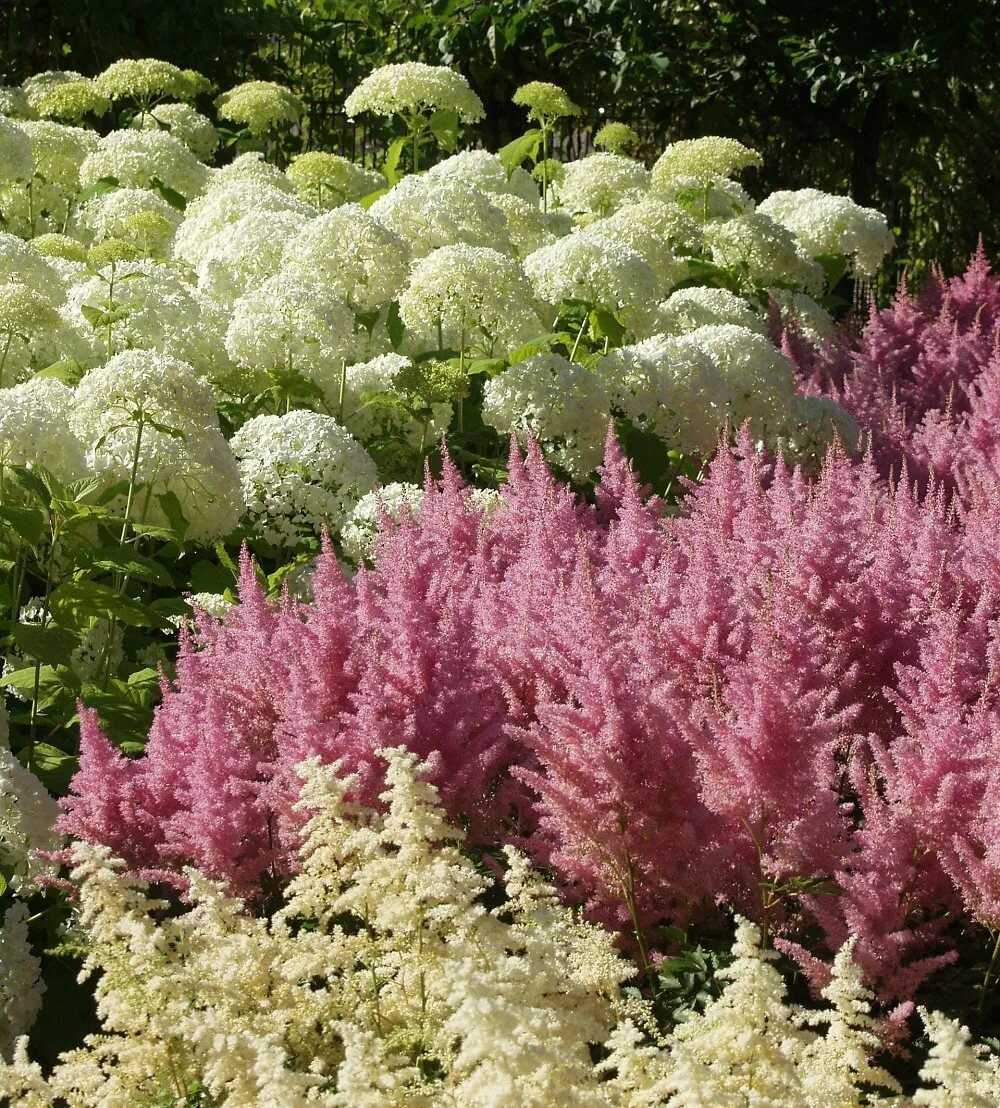 Гортензия и астильба — безупречное сочетание, и особенно хороши вместе в усадьбах, оформленных в викторианском или классическом стилях