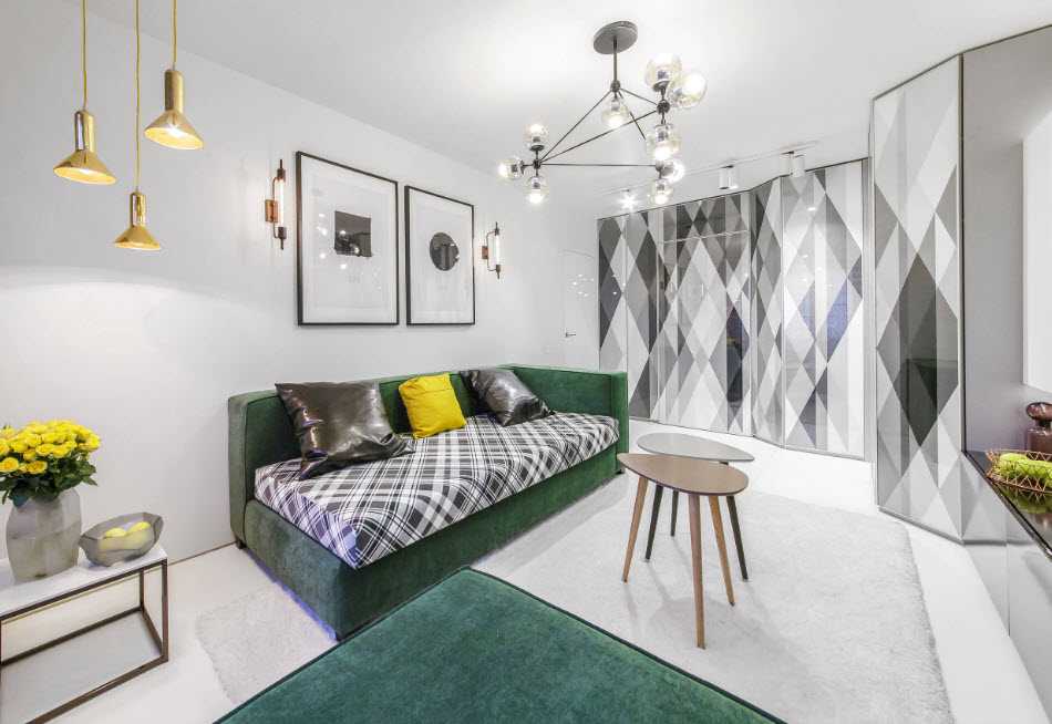 Украшают помещение диванными подушками или картинами. Декоративных элементов должно быть минимум.