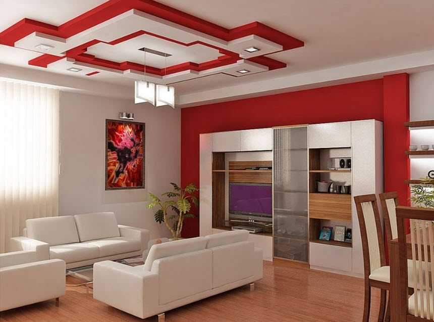 Красная стена в интерьере гостинойИсточник www.upshine.com