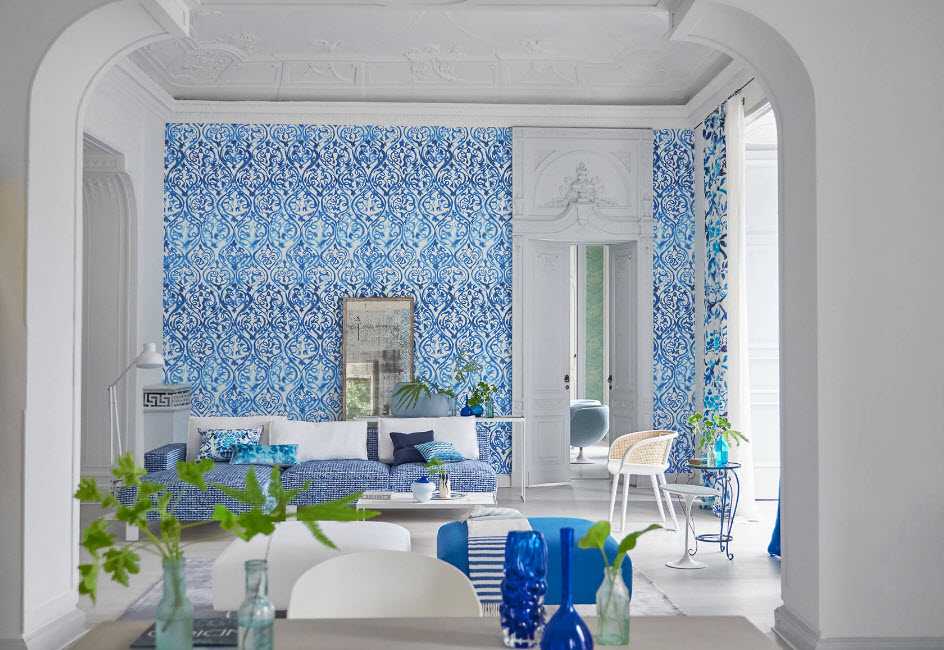 - Синий цвет чаще всего используют для оформления гостиной, выполненной в морском стиле.